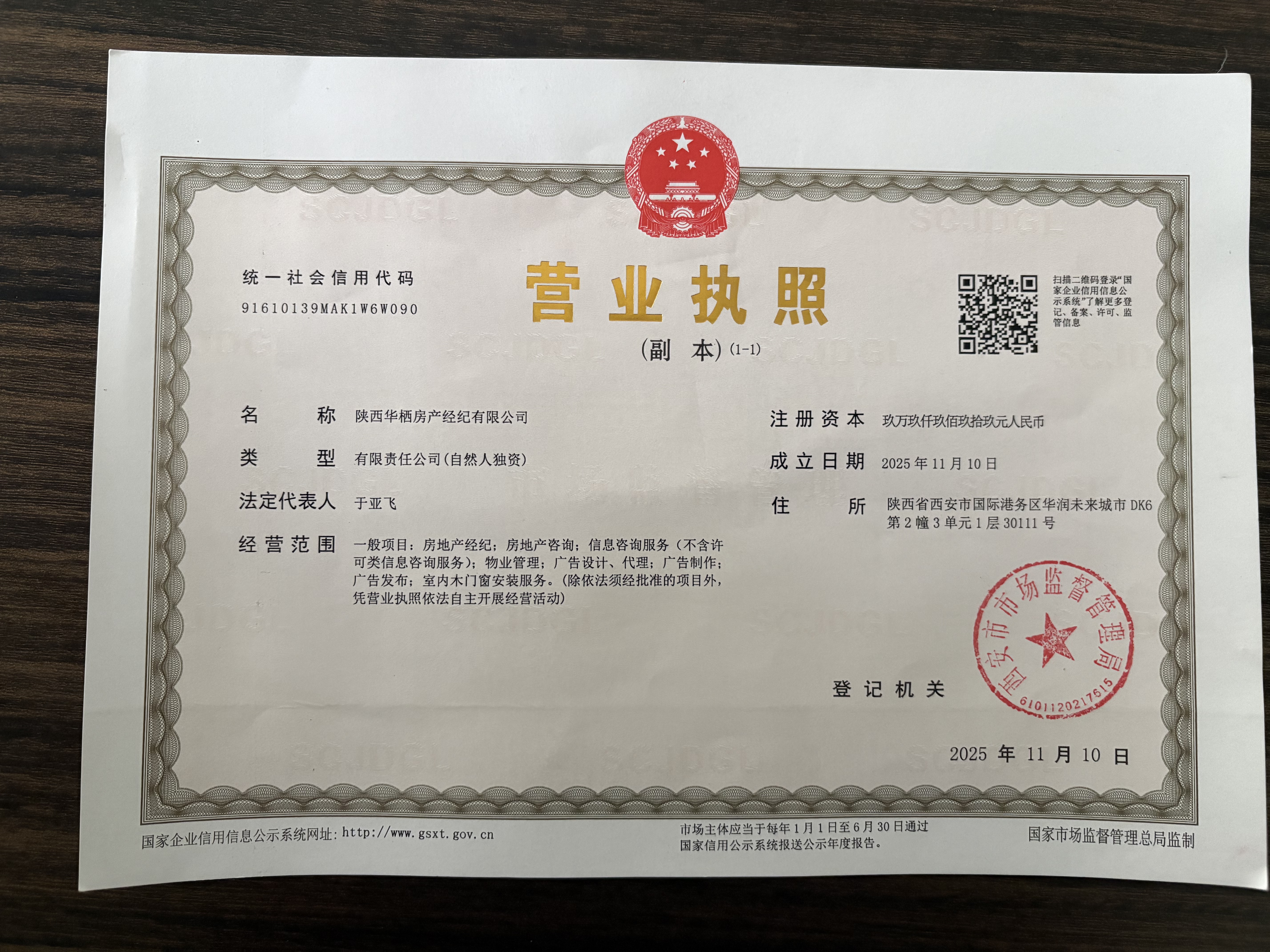 | 固定经营场所 | 陕西省西安市国际港务区华润未来城市DK6第2幢3单元1层30111号 |