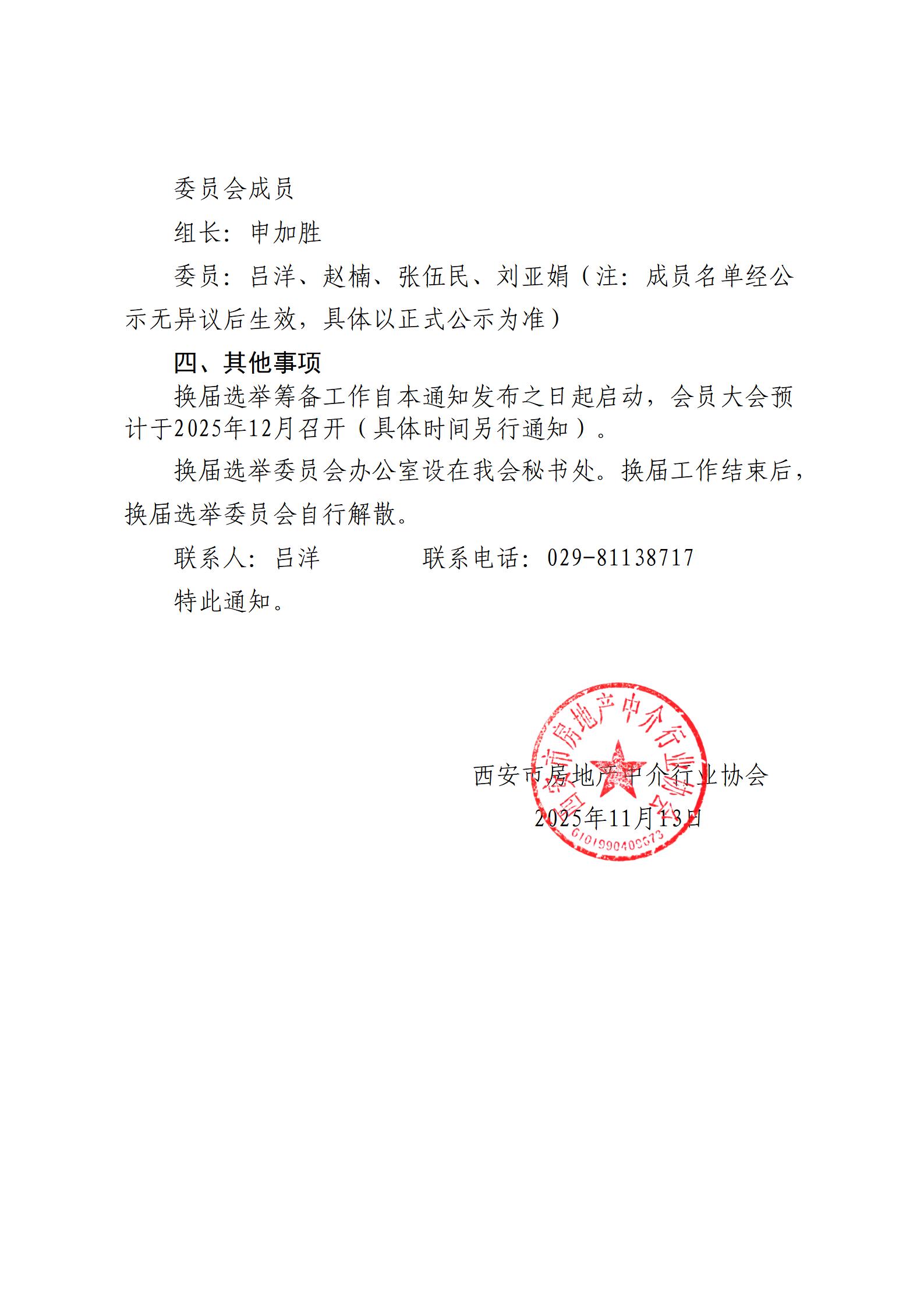 西安市房地产中介行业协会关于成立换届选举委员会的通知